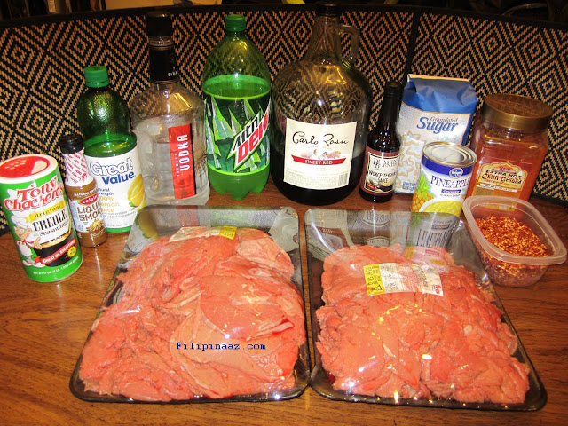 Mix all ingredients and marinate beef for 1 hour or so. Best if you let it marinate for 25 hours[Photo below after marinating]