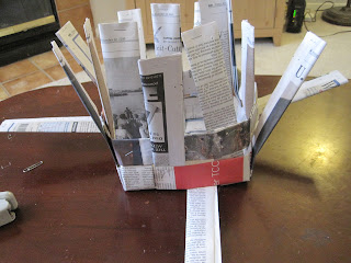 Everyone has newspapers sitting at home, and I happened to see a picture on Martha Stewart of a newspaper basket and thought "Hey I can do that!". Martha usually out crafts me, but I got her this time!