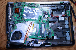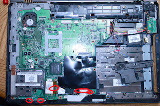 By now you have removed the Keyboard, LCD panel, and the Top Chassis with the track pad.... on to removing the system board it self.