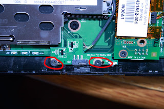 Move down to the bottom and you will need to remove the screws for the Wi-Fi switch this also controls the Bluetooth in the system (if it has Bluetooth built in). You can leave it connected to the system-board at this time if you like I found no reason to remove it .. Unless you are actually replacing the system board it self.