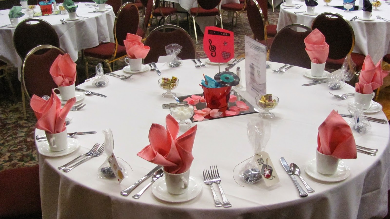 Tim showed up in a trendy black leather jacket, and dyed blue jeans. His silver guitar glistened through the St. Mary's Event Center where the appreciation event was held. The theme this year was "Volunteers Rock". Each table setting had a thoughtfully wrapped inspiration rock tied with a tag that had Rock and Roll insignia, guitars, and rock and roll stamps. The center piece was a colorful pail overlaid with "You Rock" Gel Stickers on it. Under the center piece was a mirror sprinkled with pastel colored flower petals.