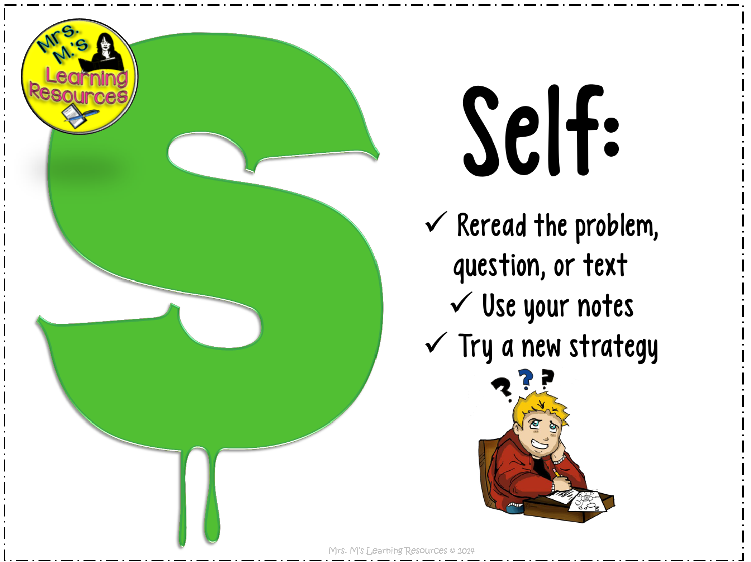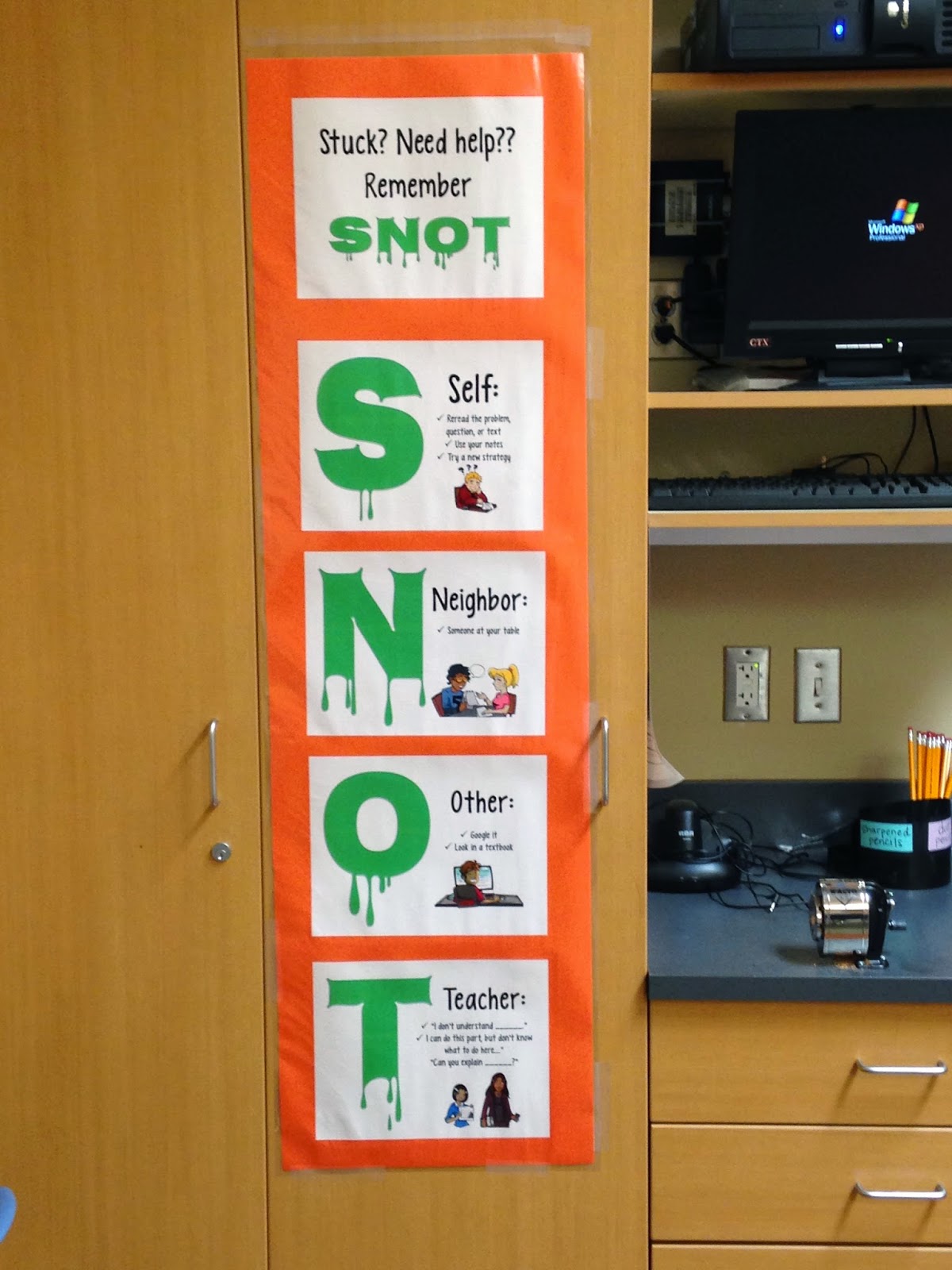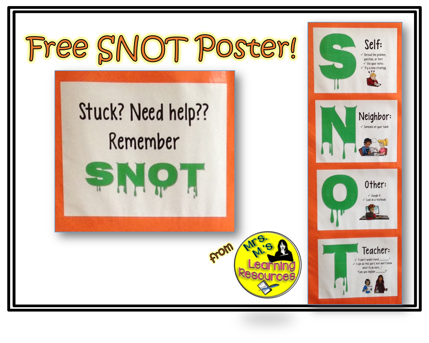 The best way to avoid this frustrating (for myself AND the student!) scenario is to give them examples of how to ask for help, like these sentence starters on the SNOT poster.