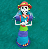 I made her for the PCAGOE (polymer clay artisans guild of etsy) October challenge. The theme is "Dia de los Muertos".