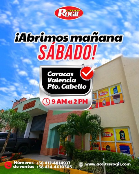 Mañana sábado abrimos desde las 9:00am hasta las 2:00pm ¿Ya chequeaste la nueva lista de precios? ✍️ Ve a las historias y en unos minutos una transmisión en vivo para que veas lo que nos llegó 💥💵 Números de ventas AceitesRogil 📲 +58 412-4814937 +58 424-4610305 Estamos en 📍 Valencia Puerto Cabello Caracas Barquisimeto Los Teques Entregamos a domicilio 🇻🇪📦 #serviciotoyota #servicio #automotriz #bandasdefrenos #chevron #mayorista #mantenimiento #cablebujia #aceitesemisintetico #accesorios #carwash #autos #cauchosvzla #autolavado #viernesrogil