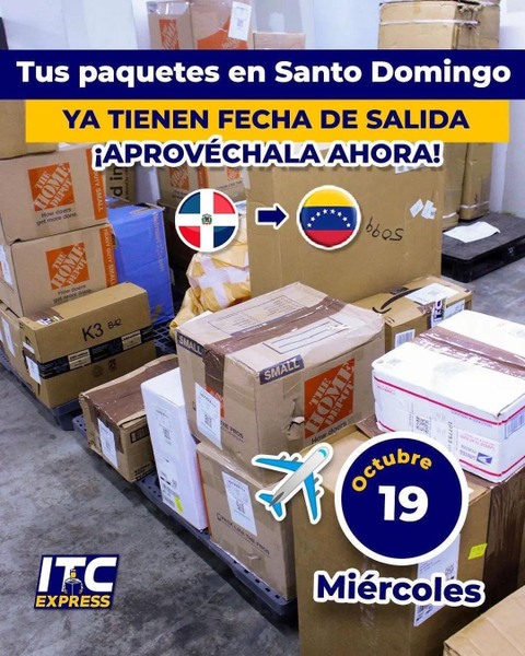 ¡TODAVÍA TIENES CHANCE!Recibimos hasta HOY 2:00pm @itcexpressrd Estamos recibiendo tus paquetes para esta nueva salida.🤩🇻🇪🇩🇴 @itcexpressrd Tráelos a nuestra sede y disfruta del mejor precio: 🇩🇴➡️🇻🇪 >> 205 pesos la libra (Caracas y La Guaira) 255 pesos la libra (interior del país). No tienes que pagar ningún costo adiciona #ITCExpress #EnviosAVenezuela #Envios #SantoDomingo #RepublicaDominicana #EnviosAereos #VenezolanosEnElMundo #Courier #ComprasOnline