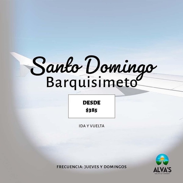 *PROMO DE VUELOS A BARQUISIMETO DIRECTO* ✈️🇻🇪 @alvasviajes ✓Santo Domingo Barquisimeto solo ida desde 280$ ✓Santo Domingo Barquisimeto ida y vuelta desde 385$ *INCLUYE:* ✓Impuestos de salida de RD ✓Equipaje de mano 8 kg ✓Equipaje bodega 25 kg ✓Prueba PCR al llegar a Venezuela ✓Asesoría de viaje Pagos en pesos en RD, dólares vía ZELLE. Tienes alguna duda? Consúltanos 📲 +18294380205 @alvasviajes #venezolanosenrd #venezolanosensantodomingo #venezolanosenrepublicadominicana #venezolanosenelexterior #barquisimeto #venezuela # aereopuerto #vuelos #lasamericas