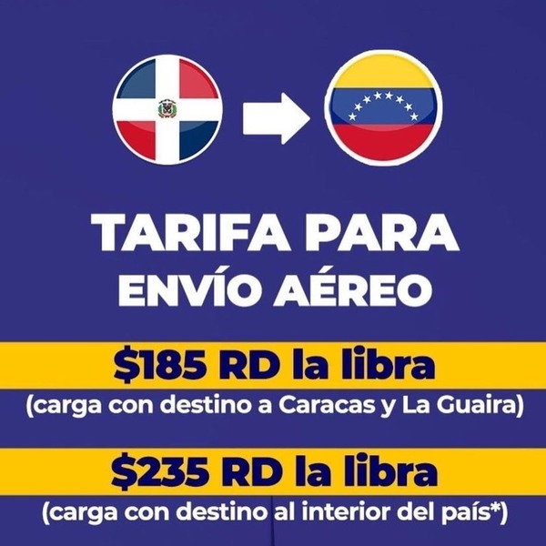 Somos tu mejor opción de envío a Venezuela🇻🇪😍 TE ESPERAMOS DE LUNES A SÁBADO 🇻🇪🇩🇴 ¿Quieres más información sobre esta salida? ¡Sigue leyendo aquí! @itcexpressrd 🇩🇴➡️🇻🇪 >> 185 pesos la libra (Caracas y La Guaira) 235 pesos la libra (interior del país). No tiene que pagar ningún costo adicional. Tráenos tus paquetes a cualquiera de nuestras sedes ubicadas en: 📍Calle Desiderio Arias, n.54, Local 3, Bella Vista, Santo Domingo (detrás del Plaza Lama, Av. Winston Churchill). 📍 Ensanche Ozama, esquina calle Hermanas Carmelitas con Octavio Mejía Ricart. Toldos Naranja, Santo Domingo Este. Y si tienes alguna otra duda, ¡déjanos un comentario! #ITCExpress #EnviosAVenezuela #Envios #venezolanosEnElMundo #VenezolanosEnRD #SantoDomingo #dominicanrepublic