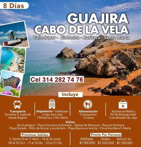 GUAJIRA Y CABO DE LA VELA. JUNIO 19 AL 26 Info y reservas 3142827476 Of calle 14 Nº 14 - 21 centro Granada. #AriatoursTeLleva