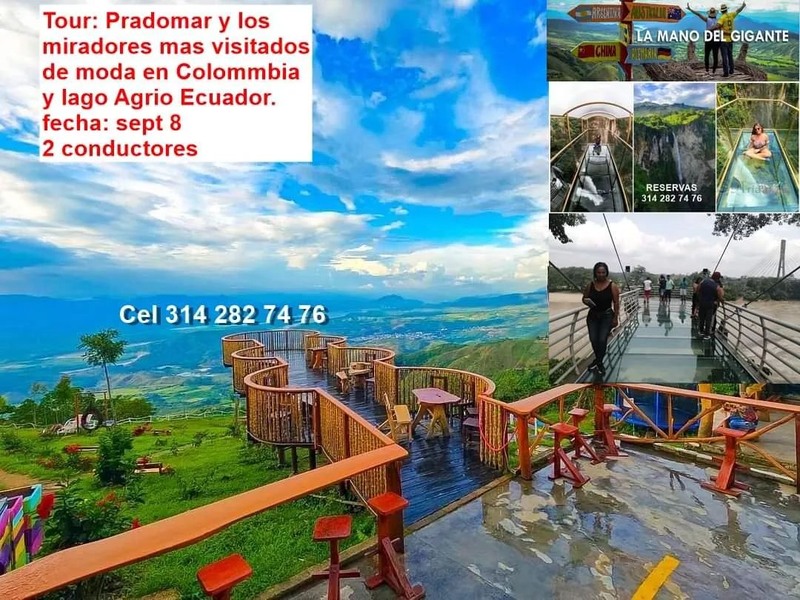 Sept 8: Pradomar y los miradores mas bonitos de Colombia. Reserva ya y disfrute lo mejor de media Colombia y lago Agrio Ecuador con su mirador puente de Vidrio. Info y reservas 314 2827476 of: Calle 14 Nº 14 - 21 centro Granada. ·AriatoursTeLleva.