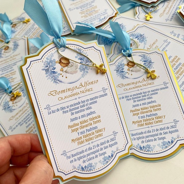 Tarjetas de recuerdo para el Bautizo de Domingo 👼🏻💙🙏🏻#bautizo #encintados #recuerdosbautizo #bautizoniño #papeleríacreativa