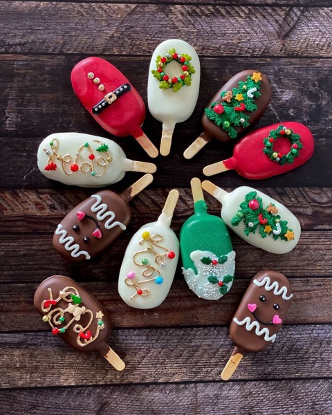 Paletas trufadas de ponqué, vestidas de Navidad 🎄