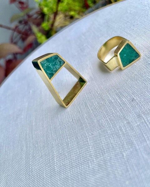 Anillos de Ángulos Geométricos y Piedra Remachada y Cristal #orfebreríacontemporánea #ágatasteñidas #plata o #bronce #anillos #cristal #resinarpoxica