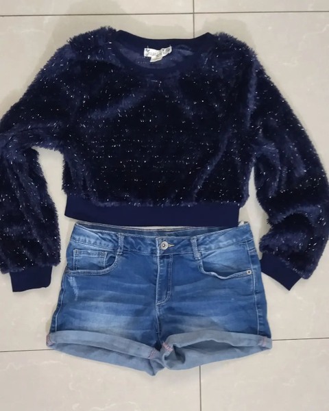 Conjunto Niña 10años/ 8$ Sweter importado peludito Short Jeans Zara