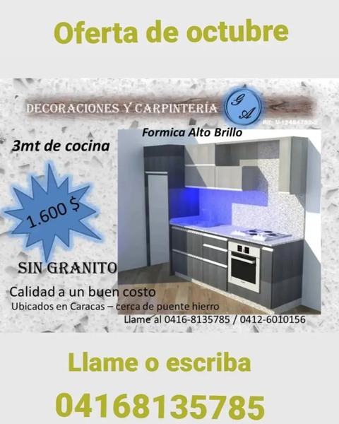 Está oferta es solo para cocina de 3mt SIN GRANITO Estoy a la orden Llame o escriban al 04168135785 #cocinasga #cocinaseconomicas #cocinasblancaaltobrillo #cocinasdelujo #cocinasencaracas #cocinasempotradas #cocinasmodernas #caracas #calidadgarantizada #garantia #granitoimportado #granitonacional #cuarzos #cocinas #mueblesamedida #muebledebaño #muebledetv #diseñovenezolano #diseño3d #decoracion #design