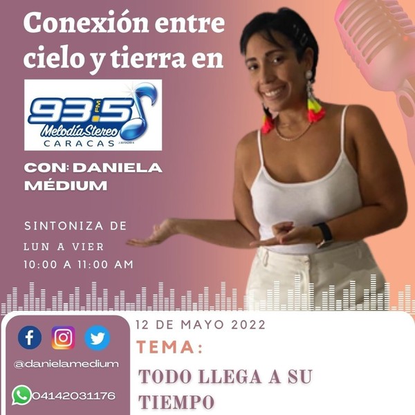 😎12 DE Mayo 😎 😃Programa conexión entre Cielo y Tierra llega a LA RADIO EN #melodíaestereo 93.5 FM con mi persona Daniela Médium. . Tema de hoy: Todo llega a su tiempo . 👉Sintoniza de lunes a Viernes de 10:00 a 11:00 am 👉No te lo pierdas y atentos para que participen e interactúen conmigo en vivo, vía: ☑ ☑Instagram Live 👉DEJA TU PREGUNTA ACERCA DEL TEMA O MENSAJE DE VOZ CORTO POR: ☑WHATSAPP 04142031176 . . #Programa #mediumvzla #Medium #abrazoangelical #abrazoangelico #médium #abrazoangelical🌟😇🌟 #radio #melodiaestereo