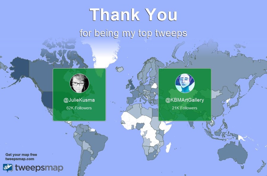 Special thanks to my top new tweeps this week JulieKusma, KBMArtGallery