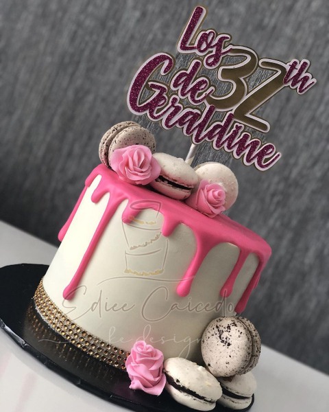 Quien dijo que lo delicado y sencillo no vende? Clásico drip-Cake con masa de zanahoria, cubierto con un delicado drip en tono rosa fuerte y macarons en su parte superior.!