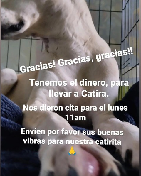 El lunes será el día! No puedo negar, que he estado huyendo a este momento, porque no quiero confirmar sospechas, Pero tampoco quiero y mi catirita no se merece, el.que me haga la loca y esperar,. Y menos que sufra por mi egoísmo. El lunes sabremos si hay o no metástasis, y que decisión tomar. Por ahora, salvo las lesiones que están saliendo en su cuerpo, y que se dispersan rápido, ella está normal, come.bien, buen animo, pero le duele caminar,.ya que entre la lesión en su pata delantera derecha y los ligamentos cruzados en la trasera derecha, no le queda más que apoyar alguna de las dos a pesar del dolor que puede sentir al hacerlo ☹️. Quiero verte sana mi Catira!! Quiero verte feliz! 🙏🙏🙏