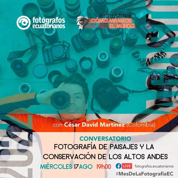 En estos momentos @cesardavidmar en vivo en un conversatorio sobre fotografía de paisajes y conservación de los altos Andes desde #Ecuador como invitado especial, durante el marco del mes de la fotografía. No se lo pierdan! Para ver la transmisión en el siguiente link: #MesDeLaFotografíaEC #cómomiramoselmundo