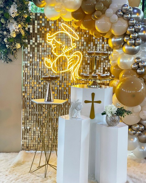 Celebración de Primera comunión Muy importante a la hora de hacer un evento de primera comunión usar colores cálidos y siempre tener un toque en color metalizado ( Dorado - plateado -oro rosa -chámpaña) esos colores harán ver más elegante tu decoración. Otro ideal en el evento es poner un tocado floral, no necesita ser grande pero si tener flores en algún lugar de la celebración 👌🏼