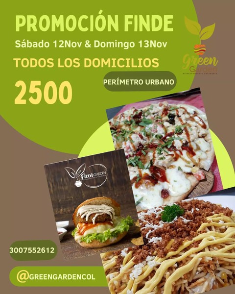 Promoción de Finde...⛈🌧🌨⚡ . Te llevamos tu antojo a donde nos digas,☎️🛵 aquí en la ciudad #Montería.👏☝️ . . . Antójate de #greengardencol . . . Te esperamos en nuestro local de 4:00pm a 9:00pm o te llevamos tu pedido a tu domicilio; Llámanos o escríbenos (+57)3007552612 (4)7850122 . . #monteriacordoba . . . . . #healthyfood #saludable #greengardencol #photooftheday #yummy #veganfood #meatless #monteriavende #Montería #pizzamonteria #monteriaventas #veganfood #cheeselover #veganfoodie #hamburguesa #sandwichlover #burgerlovers #healthyfoodshare #veganfood #comidamonteria #desgranado #monteriafit #Monteríafit #comidavegetariana #veganosmontería #arepas #vegetarianosmonteria #pizzapizza🍕 #monteriavendeoficial®