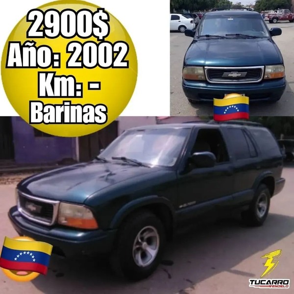 🏯▪Ubicación: Barinas- San Cristóbal 💰▪Precio: 2.900$ 📨▪Teléfono:04247149460 👷▪Instagram: 🔩▫Marca: Chevrolet 🚘▫Modelo: Blazer 📆▫Año: 2002 📟▫Km: 🔧▫Transmisión: hidráulica 📥▫Acepta Cambio: no 💳▫Extra: 100% operativa, 4 cauchos nuevos, caucho de repuesto al 50% de vida, batería con garantía, mantenimiento al día, pastillas de frenos nuevas. Tiene todo el sistema del aire acondicionado solo de recargar gas. 📖▫Unico Dueño: 🔔▫Fallas: ningúna _________________________ #tachira #barinas #maracaibo #caracas #Valencia #Carabobo #Venezuela #merida #barquisimeto #falcon #Maturin #Anzoategui #Maracay #margarita #vendo #compro #tvcvzla #remato #guarico #Tucarro #Bolivar #Trujillo #Barquisimeto #Tucarro #TucarroVendelo #carro ________________________ ▪︎Ver publicaciones del mismo Modelo Pulsa Aqui 👉 #TucarroVendeloBlazer 👈 ▪︎Ver publicaciones de la misma Marca Pulsa Aqui 👉 #TucarroVendeloChevrolet 👈 ▪︎Ver mas Autos en el mismo estado 👉 #TuCarroVendeloBarinas 👈 _____________________ ⛔TucarroVendelo no hace Parte de las Negociaciones⛔ Ni de los precios Puestos por sus dueños 🫱🏻🫲🏻🔑