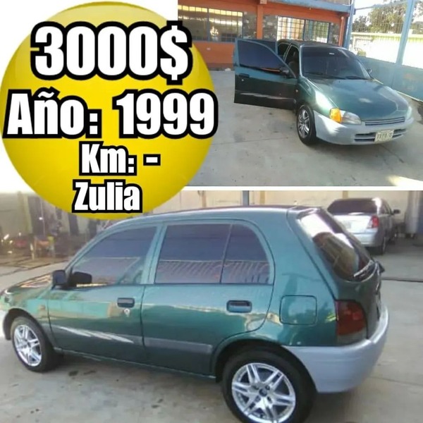 馃彲鈻猆bicaci贸n: Maracaibo 馃挵鈻狿recio: 3mil$ 馃摠鈻猅el茅fono: 0412-0698418 馃懛鈻狪nstagram: jairaale145 馃敥鈻玀arca: Toyota 馃殬鈻玀odelo: Extarly 馃搯鈻獳帽o: 1999 馃摕鈻獽m:- 馃敡鈻玊ransmisi贸n:- 馃摜鈻獳cepta Cambio: No, el dinero 馃挸鈻獷xtra: 馃摉鈻玌nico Due帽o: Segundo due帽o 馃敂鈻獸allas: ninguna, todo bueno #maracaibo #zulia #Maracaibo #ZULIA #Vigia ________________________ 鈻笌Ver publicaciones del mismo Modelo Pulsa Aqui 馃憠 #TucarroVendelostarlet 馃憟 鈻笌Ver publicaciones de la misma聽 Marca Pulsa Aqui 馃憠 #TucarroVendeloToyota 馃憟 鈻笌Ver mas Autos en el mismo estado 馃憠 #TuCarroVendeloZulia 馃憟 _____________________