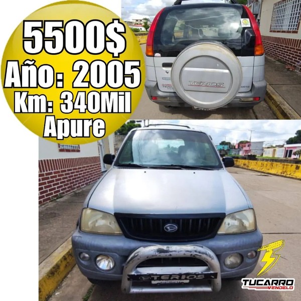 🏯▪Ubicación: San Fernando de Apure 💰▪Precio: 5500$ 📨▪Teléfono:04243376625 👷▪Instagram:- 🔩▫Marca: Daihatsu 🚘▫Modelo:Terios 📆▫Año:2005 📟▫Km:340000 🔧▫Transmisión: Automática 📥▫Acepta Cambio: no 💳▫Extra: tengo 2 bujes nuevos para montar 📖▫Unico Dueño:si 🔔▫Fallas: cambiar los amortiguadores ______________________ #tachira #barinas #maracaibo #caracas #Valencia #Carabobo #Venezuela #merida #barquisimeto #falcon #Maturin #Anzoategui #Maracay #margarita #vendo #compro #tvcvzla #remato #guarico #Tucarro #Bolivar #Trujillo #Barquisimeto #Tucarro #TucarroVendelo #carro ________________________ ▪︎Ver publicaciones del mismo Modelo Pulsa Aqui 👉 #TucarroVendeloTerios ▪︎Ver publicaciones de la misma Marca Pulsa Aqui 👉 #TucarroVendeloToyota ▪︎Ver mas Autos en el mismo estado 👉 #TuCarroVendeloApure👈 _____________________ ⛔TucarroVendelo no hace Parte de las Negociaciones⛔ Ni de los precios Puestos por sus dueños 🫱🏻🫲🏻🔑
