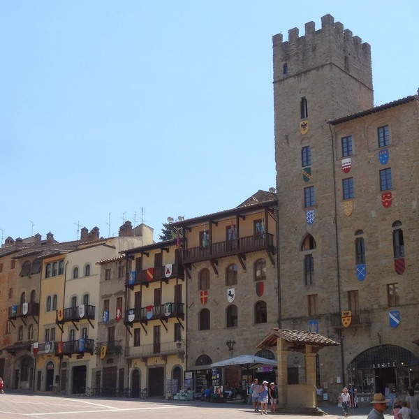 ¡Que se hace tarde! Hoy nos despedimos desde #Arezzo y su Piazza Grande! ¿Os suena en qué película aparece esta plaza? Una maravilla más de la #Toscana italiana. ¡Buenas noches!