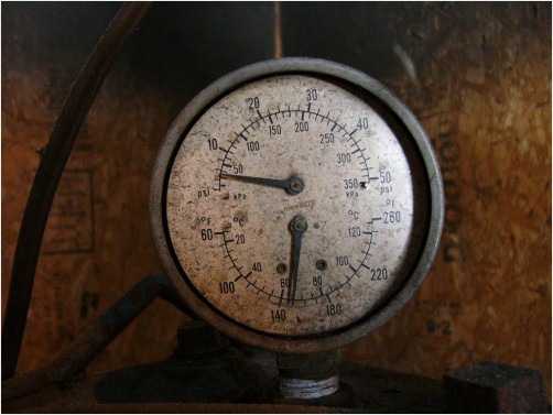 Temperature gauge on outside furnace, 180 F allows for a very warm and cozy house. Less than 140 and it gets cool in the house.