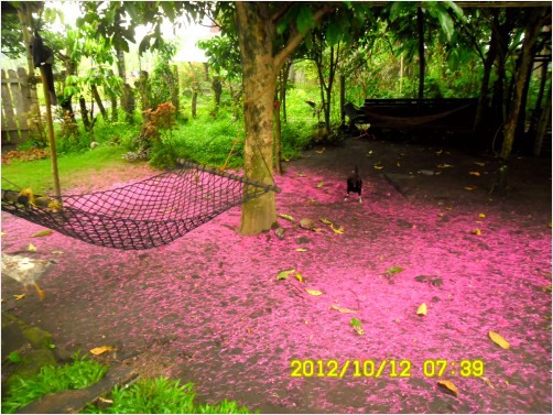 when macopa tree starts to blossoms, evrything surrounded with pink