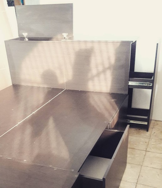 CAMA DOBLE FABRICADA SEGÚN DISEÑO Y MEDIDAS MODELO Cama gaveta+cabecera baúl de un lado gaveta estilo delizante con comportamiento +piecero de zapatera con una gaveta de un lado . Una cama para tener todos los espacios Gracias a nuestra cliente Sra. Alina #diseñoscama#camadoble#mobiliariohogar#ideas#recamaras#somosfabricantes