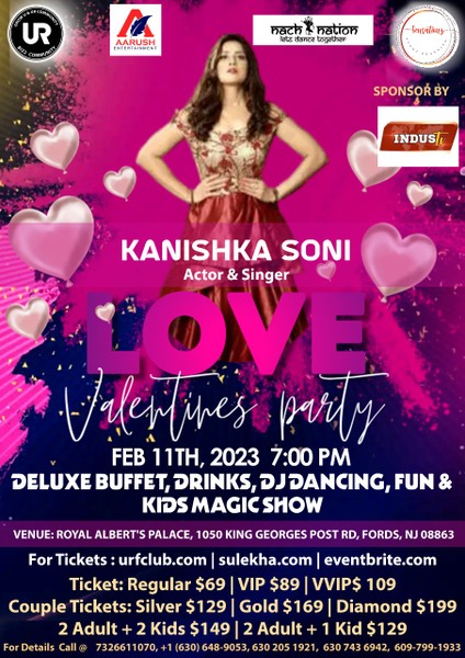 Book your ticket at 1. https://urfclub.com/events/valentines-party/ 2. https://events.sulekha.com/valentines-party_event-in_fords-nj_365759 3. https://www.eventbrite.com/e/valentines-party-tickets-509409466427