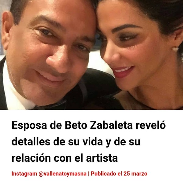 Maria Fernanda, esposa del cantante vallenato Beto Zabaleta, reveló su edad, cuántos años lleva con el artista, por qué no ha tenido hijos con él, su canción favorita, cómo es su relación con los hijos de Beto y mucho más. La Pochito, como le dice Beto Zabaleta a su esposa, respondió las preguntas a sus miles de seguidores a través de las historias de Instagram. Aquí le compartimos 13 preguntas con sus respectivas respuestas de Maria Fernanda. 1. Pregunta: ¿Beto es Celoso? Maria Fernanda: Si 2. P: ¿Tu secreto para ser feliz al lado de un hombre famoso? M.F: No verlo como tal. Sino como el ser humano que es. 3. P: ¿Canción que más te gusta del vallenato y de Beto? M.F: Todas las canciones de Beto me gustan, especialmente las que me dedica. 4. P: ¿Cuántos años tiene tu hijo? M.F: 25 5. P: ¿Cómo te mantienes así de joven con un hijo tan grande, a los cuántos años lo tuviste? M.F: A los 18 6. P: ¿Te llevas bien con los hijos de Beto? M.F: Yo no me llevo mal con nadie, no sé ellos. 7. P: ¿Cuánto tiempo llevas con Beto Zabaleta? M.F: Llevamos 24 años 8. P: ¿Por qué no tuviste más hijos? M.F: Porque Dios solo me premió con uno. Que es mi vida y mi orgullo eterno. 9. P: ¿Cierto que para el amor no hay edad? M.F: Para el amor solo hace falta amor. 10. P: ¿Por qué te dice Beto La Pocha? M.F: No sé. Siempre me ha dicho así. 11. P: Me pareces una mujer dedicada a tu esposo. M.F: Creo que si lo soy. 12. P: ¿Tienes hijos? M.F: Si, tengo uno que es mi vida entera. 13. P: ¿Cuál es el secrero para que un hombre como Beto te quiera tanto? M.F: Creo que no es secreto. Simplemente amor.