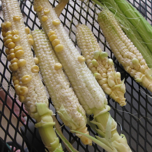 My son and grandkids grew this pitiful corn. It was so sad that I just had to photograph it! We ended up cooking it and eating most of the kernels though they were kind of tough.