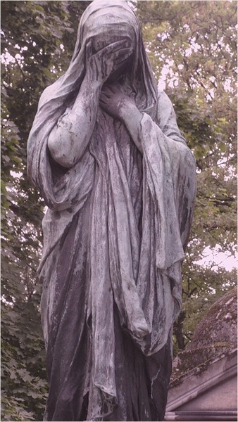 Virgin Mary In Pere Lachaise, Statue In Graveyard Paris Cemetery