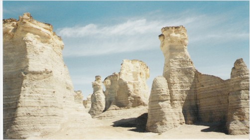 These rock formations in western Kansas used to be at the bottom of an ancient inland sea. Located about 30 miles south of the Wakeeney exit on I-70.
