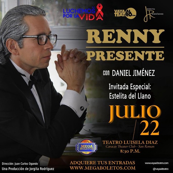 “De nuevo el poder de RENNY PRESENTE” Es una propuesta teatral que nos muestra a uno de los personajes de referencia de la Venezuela de los años 70, de la mano del actor Daniel Jiménez. Invitada Especial : Estelita del Llano @estelitadelllanooficial Lugar : Teatro Luisela Diaz @luiseladiazctc Día: 22 de julio / 8 pm Bajo la producción de : @jorgitarodriguez Entradas a la venta en : @megaboletos