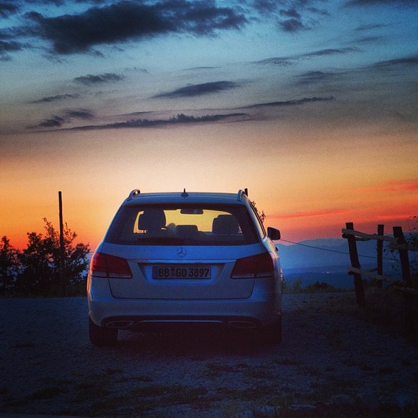 in the sunset with the new #mercedes #eclass Wagon (which comes with the new 9G-TRONIC when you order the E 350 BlueTEC Diesel engine) ... [Mercedes-Benz E 350 BlueTEC T-Modell / Wagon | V6 - 252hp - 6.9 sec | Combined fuel consumption: 5.5 l/100km | CO2 emission: 144 g/km] #mercedesbenz #sunset